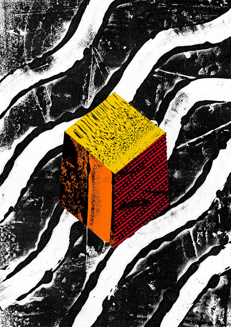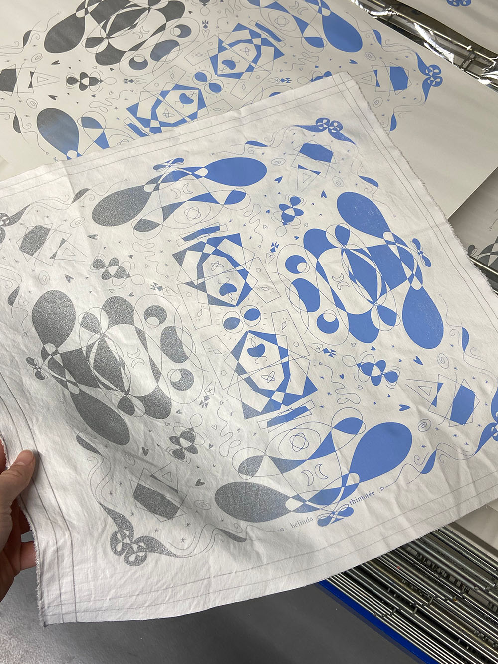 ILLUSTRATION — FEBRURARY 2023 Visual made for a scarf. This drawing explores the symmetry and play with the perception of figures and visual illusions that our brain creates.